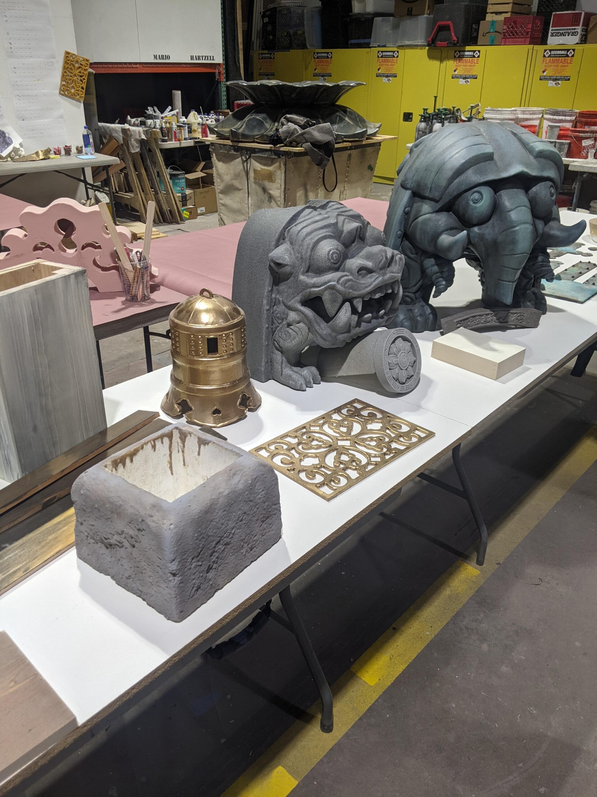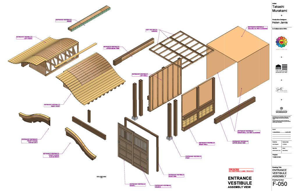 My role also entailed creating a 100-plus page build deck detailing individual parts of the pagoda. Including the walls, millwork, decorative trims, roof, and ceiling. I was responsible for working with the scenic artists and Project Managers to decide how to construct and attach each element.