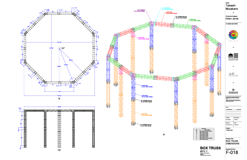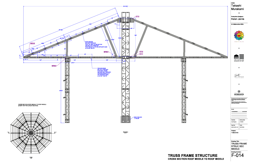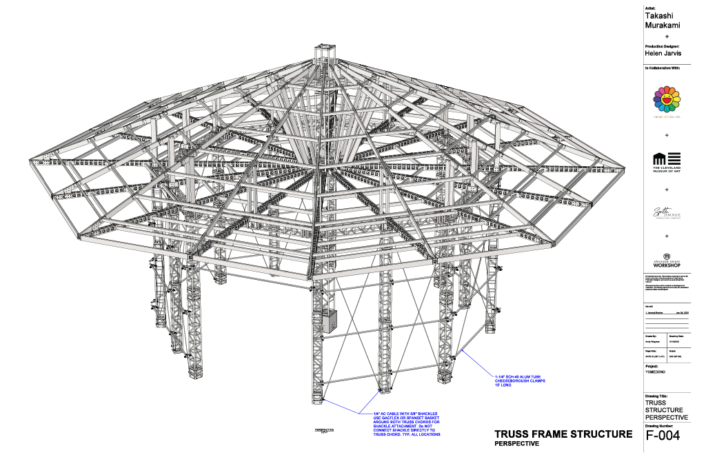 My role was to value engineer while preserving the design. The Yumedono is a temporary building that would reside within the Cleveland Museum of Art’s Atrium. Inside the Yumedono, Takashi Murakami’s art would be showcased. Murakami added customized architectural elements to the structure. We were able to execute these design directions without compromising the structure.